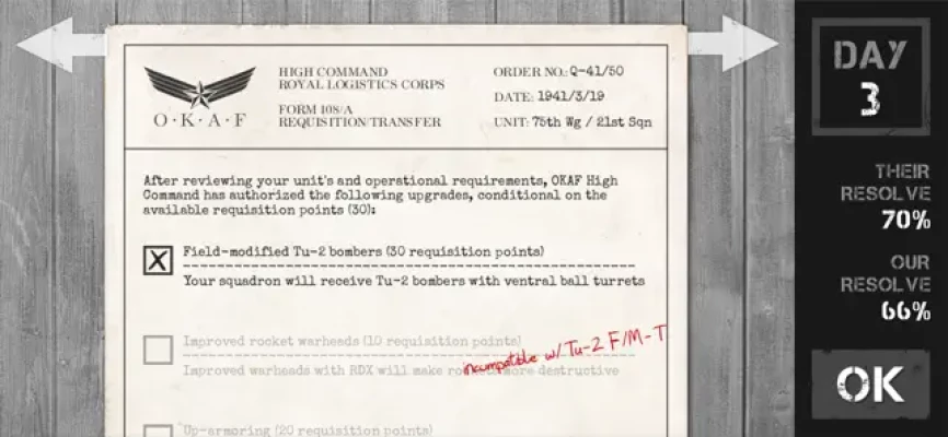 Upgrade your ragtag air force with better aircraft, bombs, rockets, armor and engines.