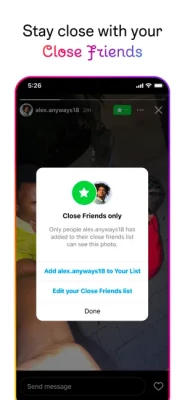 - Start group chats and share unfiltered moments with your Close Friends.