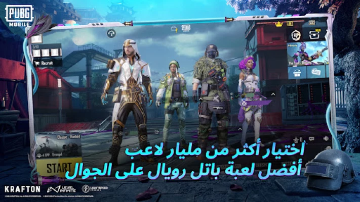 تقدّم PUBG MOBILE معارك اللعب الجماعي المجانية الأكثر قوة على هاتفك المحمول. انضم إلى المعركة، وتزوّد بالعتاد، والعب للفوز. تمكّن من النجاة في معارك ملحمية تضم 100 لاعب في الوضع الكلاسيكي، والحمولة، ومعارك الساحة سريعة الوتيرة من نوع 4 ضد 4، ووضع الإصابة بالعدوى. النجاة هي أهم شيء. كن آخر الصامدين. اقبل المهام وأطلق النار!