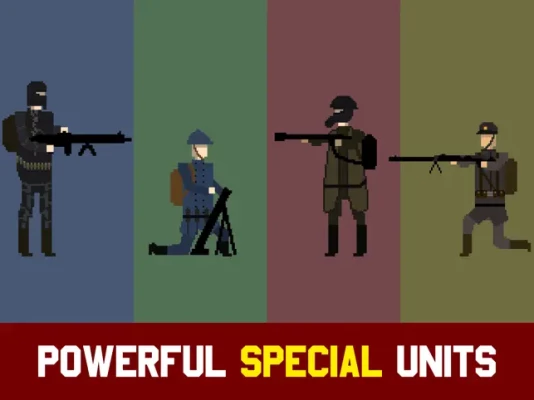 Select a variety of unique pixel units and spawn them strategically to be the hero of the war!