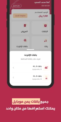 هذا التطبيق يمكنك من الاستفادة من العديد من الخدمات٫ والتي تشمل الاستعلام عن الرصيد الأساسي والباقات التي تم اشتراكك فيها٫ كما يمكنك من الاشتراك في أي من الباقات المتاحة.