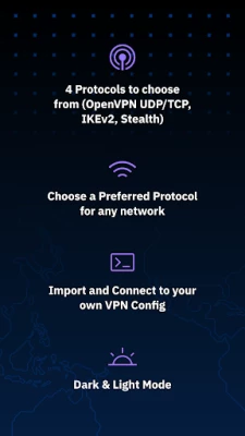 • 4 protocols to choose from (OpenVPN UDP/TCP, IKEv2, Stealth)