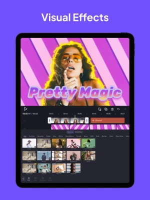 VivaCut, Professional Video Editor APP for full screen video creating. Whether you want to make artistic films or simply share memories and funny moments with friends, Viva Cut is the best Video editor you need. Professional Video Editing App [Cool Transition] Create amazing with cinematic overlay video editor with transition effects in VivaCut[visual effects] VHS, RGB, Trippy, Glitch, GB, Grainy, Fisheye[Music Marker] Mark the track and add effects according to the music rhythm. [Audio Extraction] Aesthetic video editor with transition effects, extract music from any video