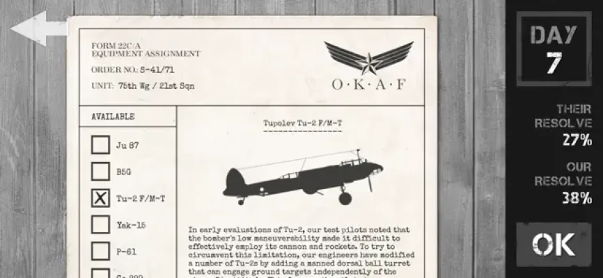 Upgrade your ragtag air force with better aircraft, bombs, rockets, armor and engines.