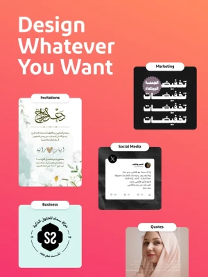 • امكانية التصميم بخلفية شفافة واستخراج صور Png لعمل ملصقات الواتس اب.