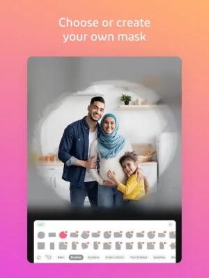• الملصقات : مجموعة كبيرة من الملصقات التي تحتوي على العديد من الأقسام مثل التشكيلات والمخطوطات والتأثيرات وغيرها. حيث يمكنكم التعديل على الوان الملصقات وظلها