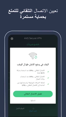 يساعدك AVG Secure VPN والوكيل لنظام التشغيل Android على البقاء آمنًا وحماية هويتك ومعلوماتك أثناء اتصالك بالإنترنت. عندما يكون AVG Secure VPN قيد التشغيل، تكون أي بيانات ترسلها أو تستقبلها تكون محمية. حتى عند الاتصال بشبكة Wi-Fi عامة.