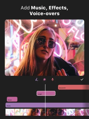 - Add music, sound effects & voice-overs.