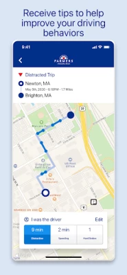 • Review your driving behaviors and receive tips to help improve