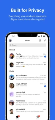 Signal is a messaging app with privacy at its core. It is free and easy to use, with strong end-to-end encryption that keeps your communication completely private.
